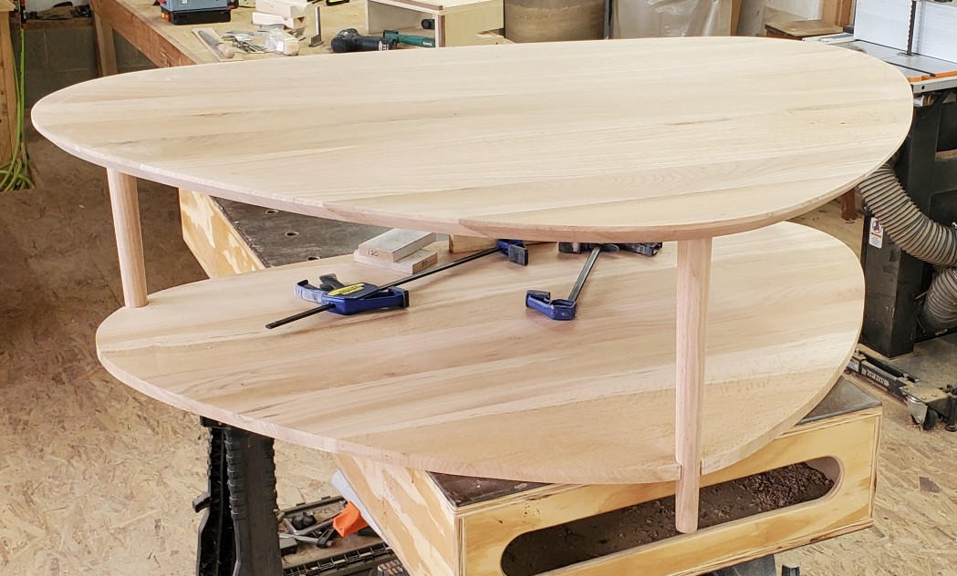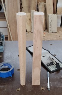 For this particular project, a good starting point was the legs. Normally, one would use a lathe to turn these round. This is an area I don’t work in much, thus for any round items, I typically resort to a hand-shaping method. A lathe will definitely be on the shopping list if I ever get a larger order that includes a number of round items!